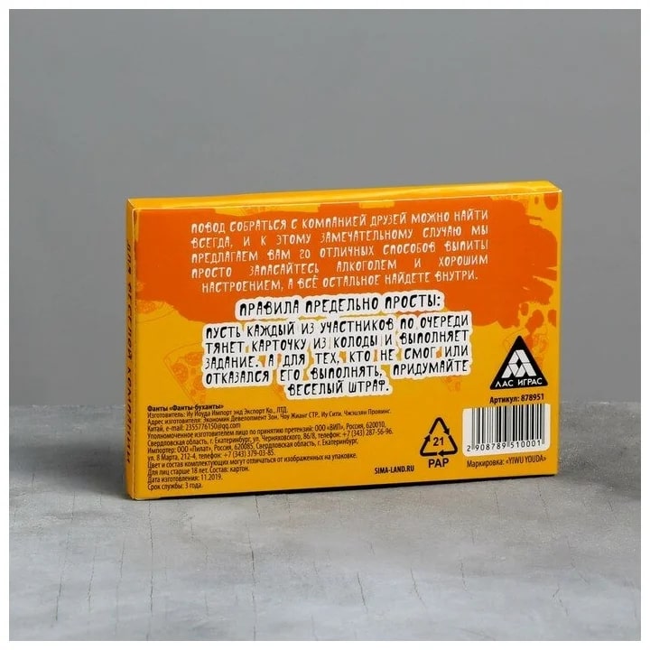 Купить игра для компании "фанты буханты" 20 карт от 100 руб. с доставкой до пункта выдачи в Апшеронске. Интернет магазин ДекаМаркет. Оплата при получении.